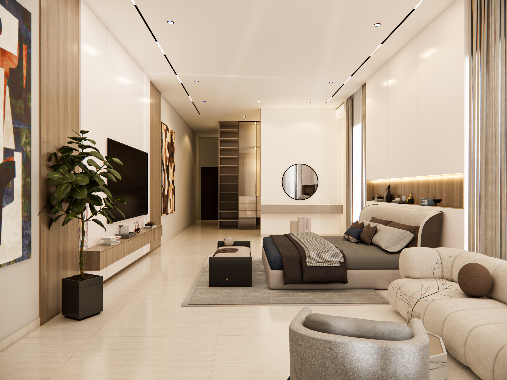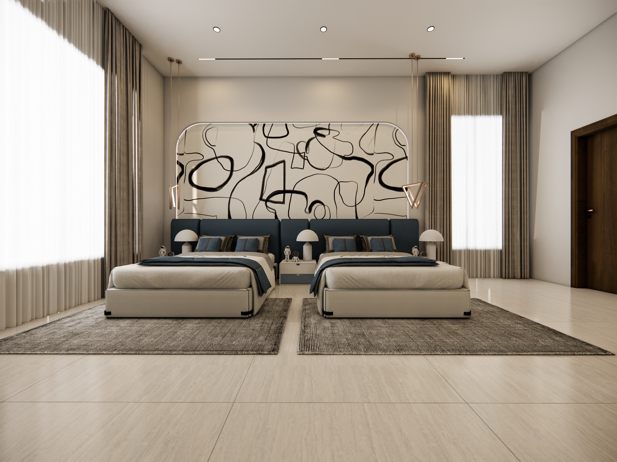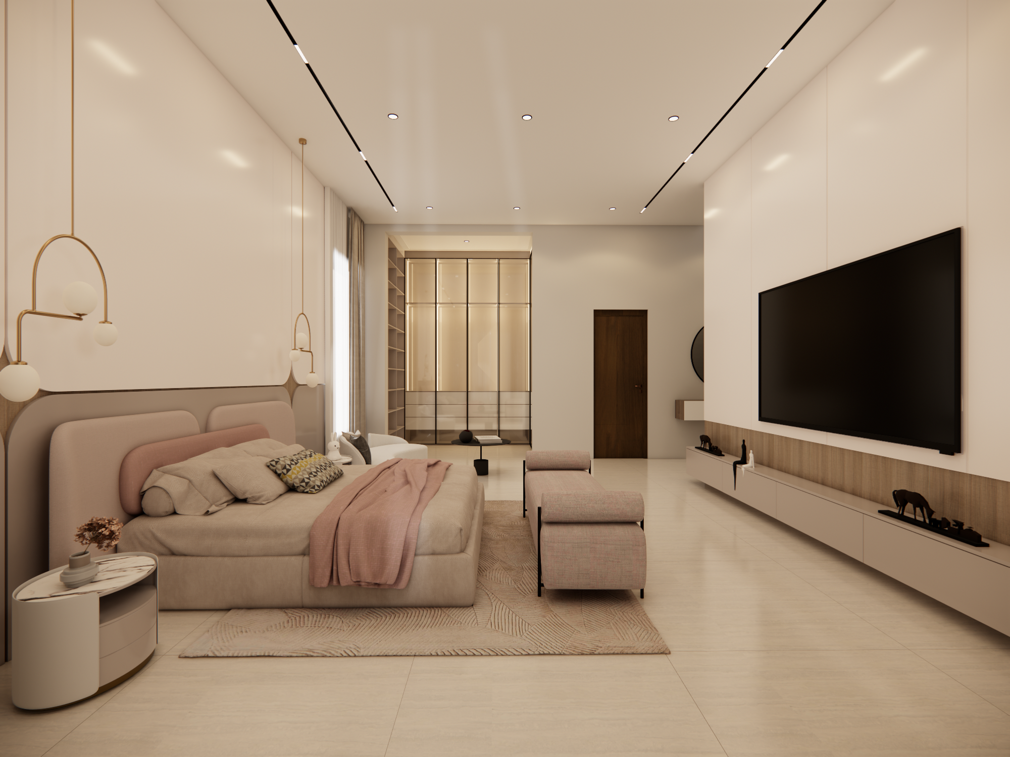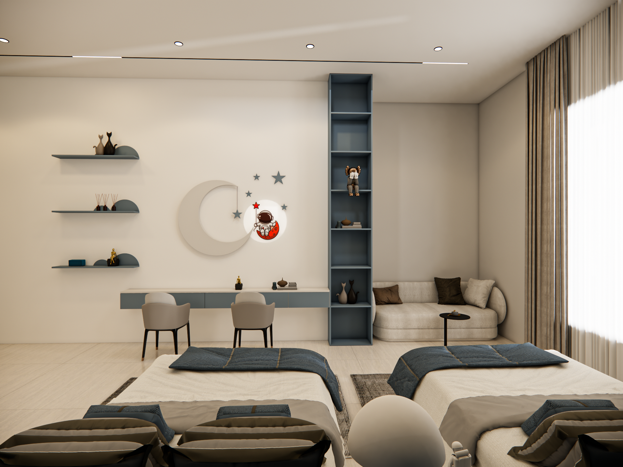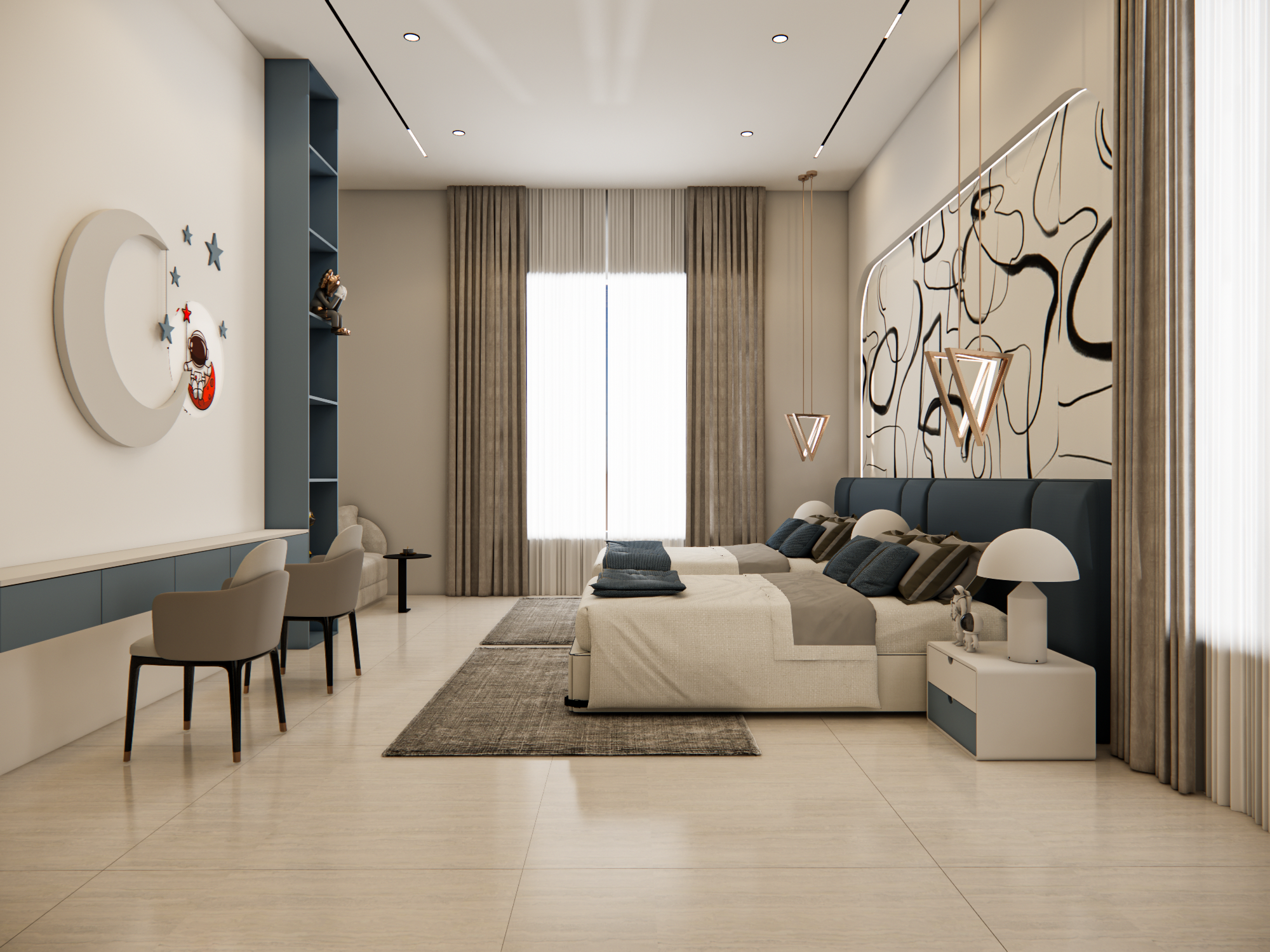We envisioned the home as a beautiful journey. It starts with a grand entrance and a stunning staircase, flowing into an expansive, welcoming living area. But a home is about more than grand gestures; it's about daily life. So, we poured just as much creativity into designing a highly functional kitchen and pantry. The most personal chapter of the story was designing the children’s rooms, one with a playful pink aesthetic for their daughter and another with cool blue tones for their son. It was all about creating spaces that sparked their imaginations.