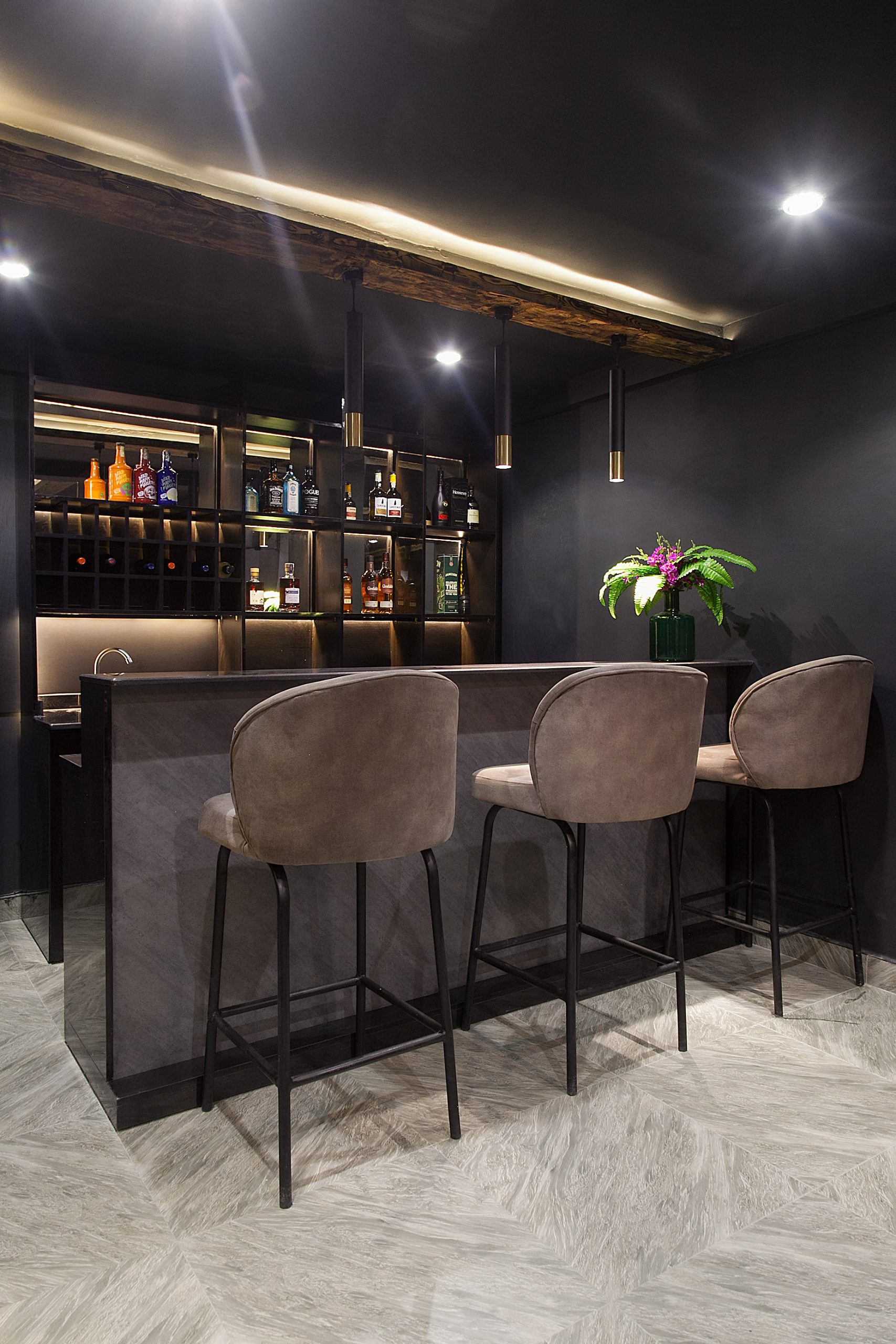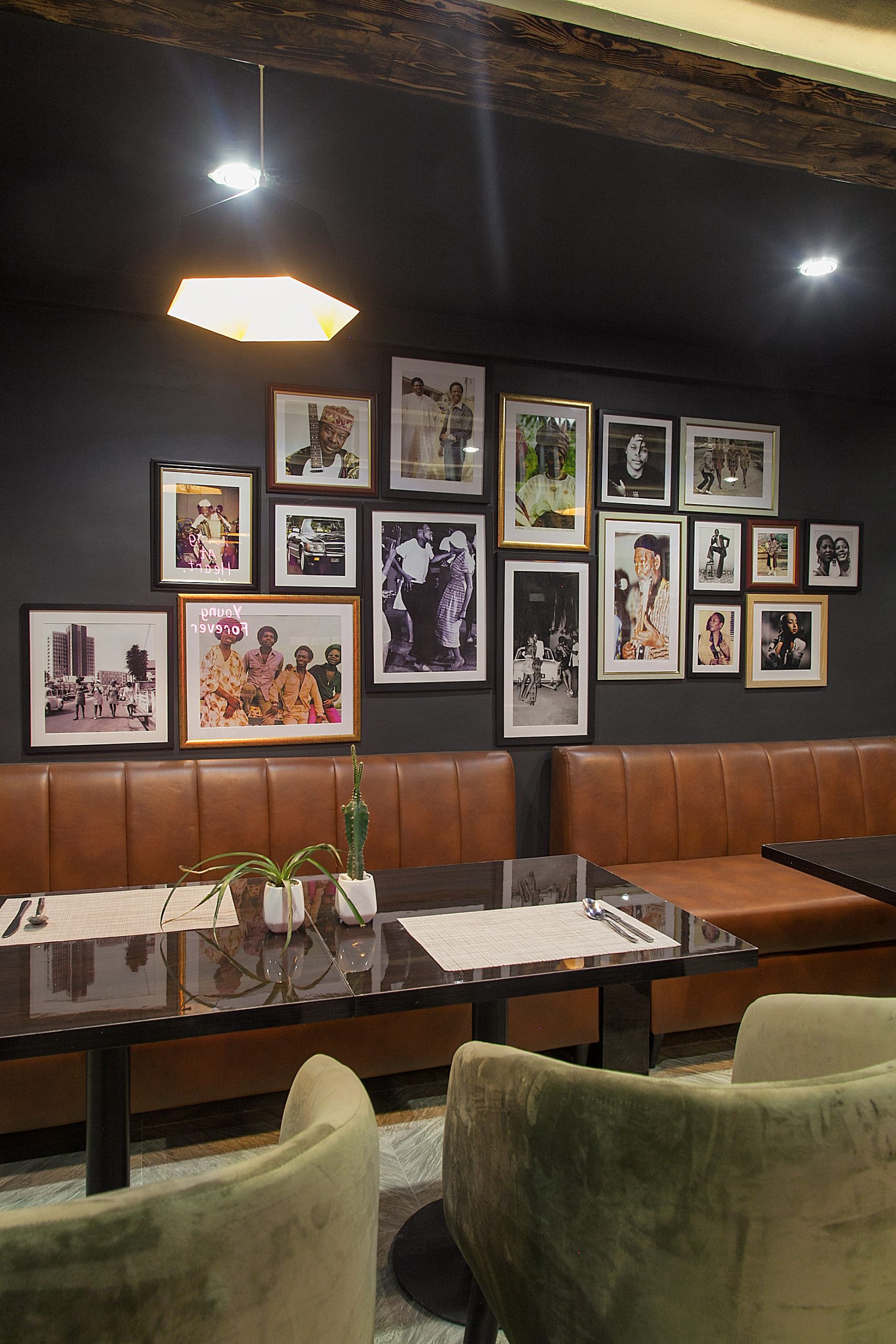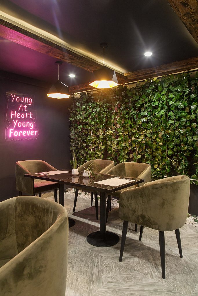 We imagined a space that felt like a secret, stylish escape. Our story began with a rich palette of deep browns and muted greens, creating an immediate sense of warmth and intimacy. The hero of the design is a breathtaking vertical garden wall, a splash of living nature that makes the whole room feel alive. We contrasted this with a curated gallery of black-and-white photos, adding a touch of cultural soul. Plush olive-green chairs and sleek tables completed the look, making the space feel both sophisticated and wonderfully comfortable.