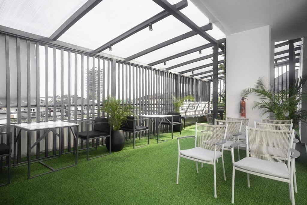 The proposed design outlines an efficient and multifunctional office space, featuring areas such as reception, co-working space, conference room, open terrace, and cafeteria for a tech company in Uganda.