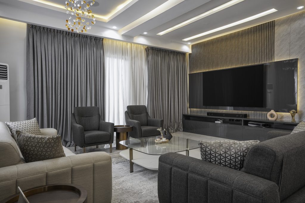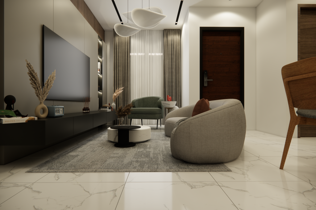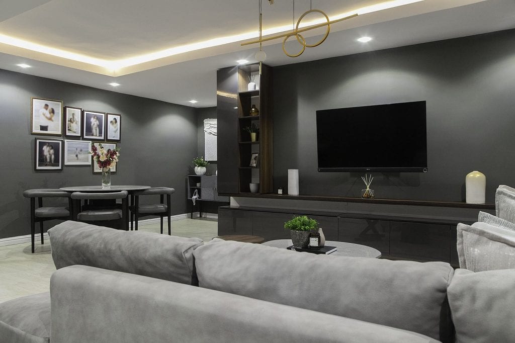 This modern living space is a harmonious blend of elegance and functionality, captured from various angles to highlight its cohesive design.