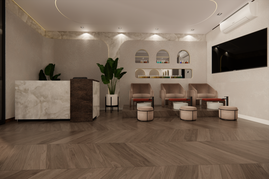 Experience the perfect blend of modern design and comfort in this beauty salon design and furnishing project. This space features clean lines, a sophisticated neutral palette, and carefully chosen furnishings.