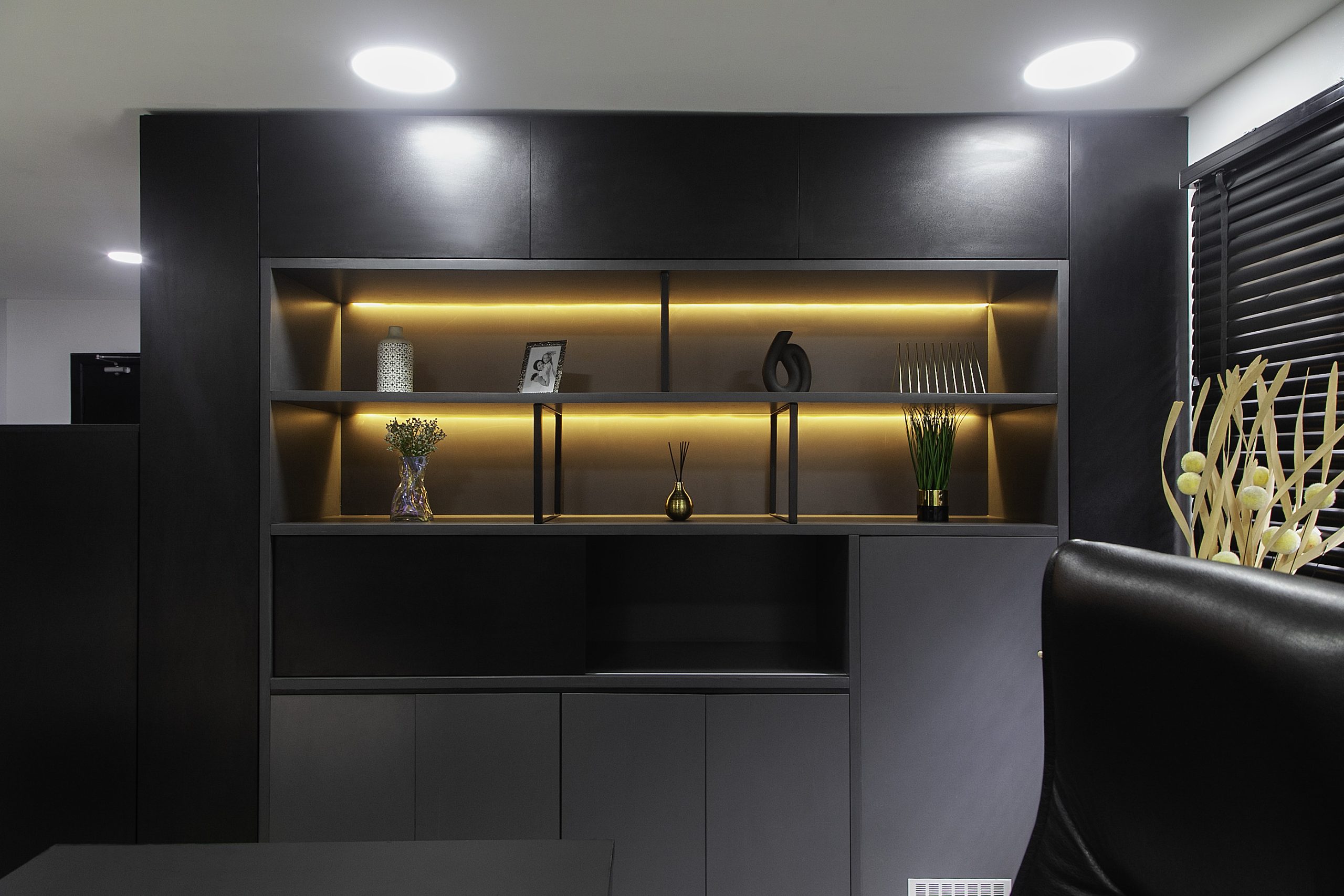 For this MD's office, we wanted to create a space that felt both powerful and peaceful. The vision for Project Alcove was to design a modern, sophisticated environment that spoke in a language of quiet confidence, using a sleek monochromatic palette to create a clean and inspiring atmosphere.