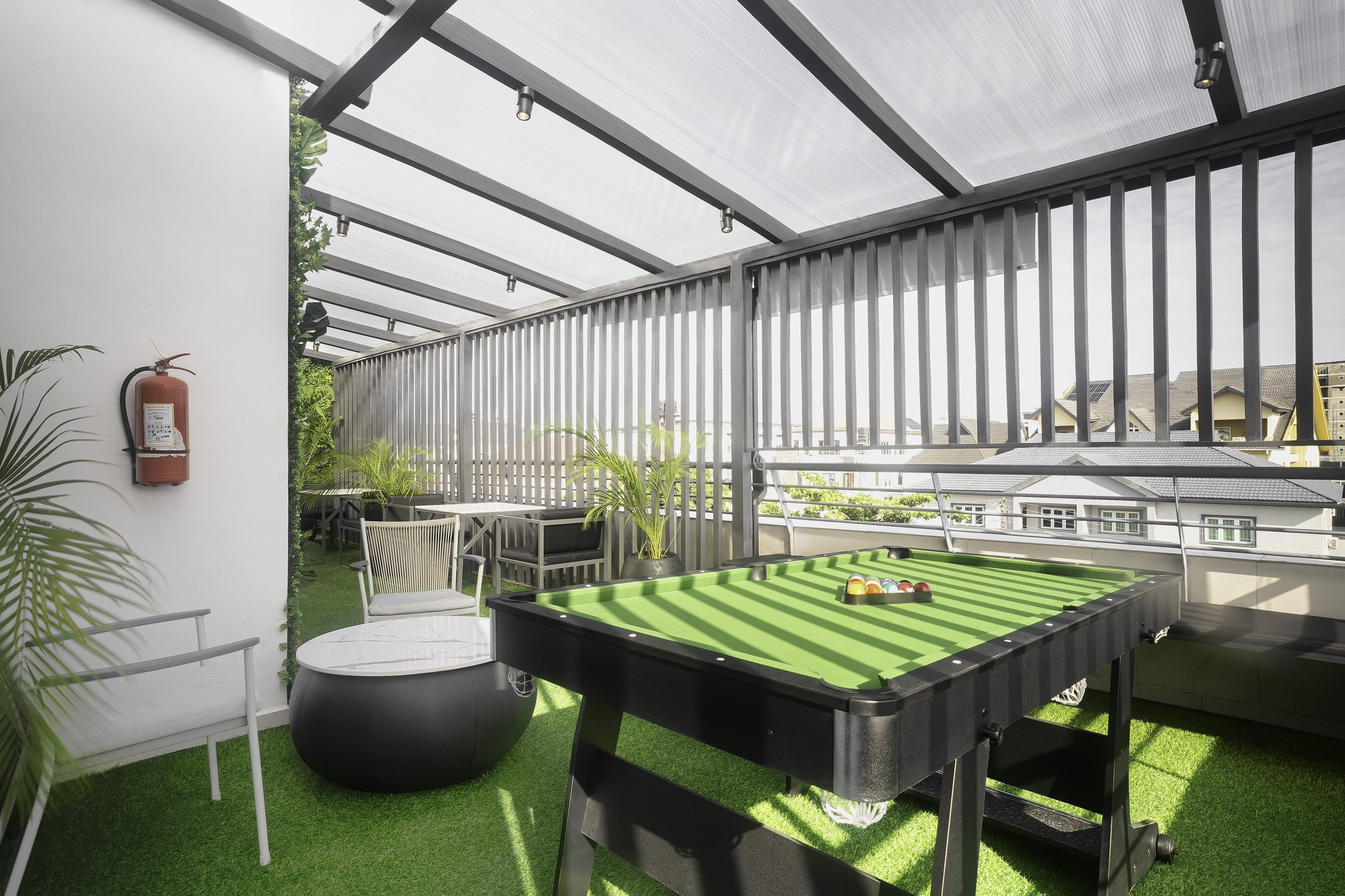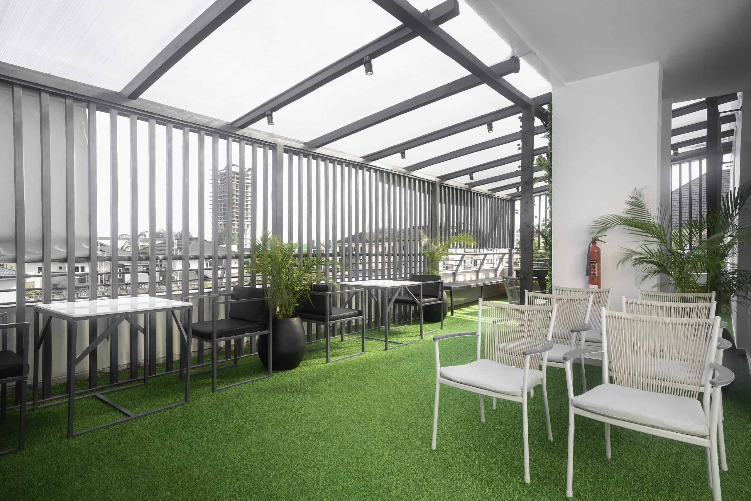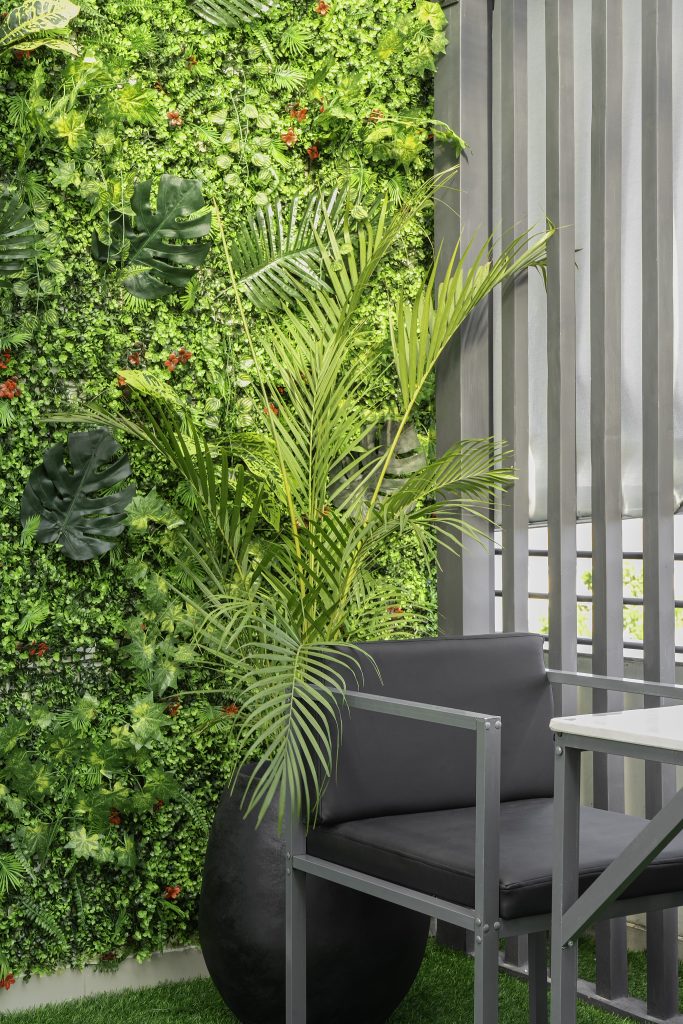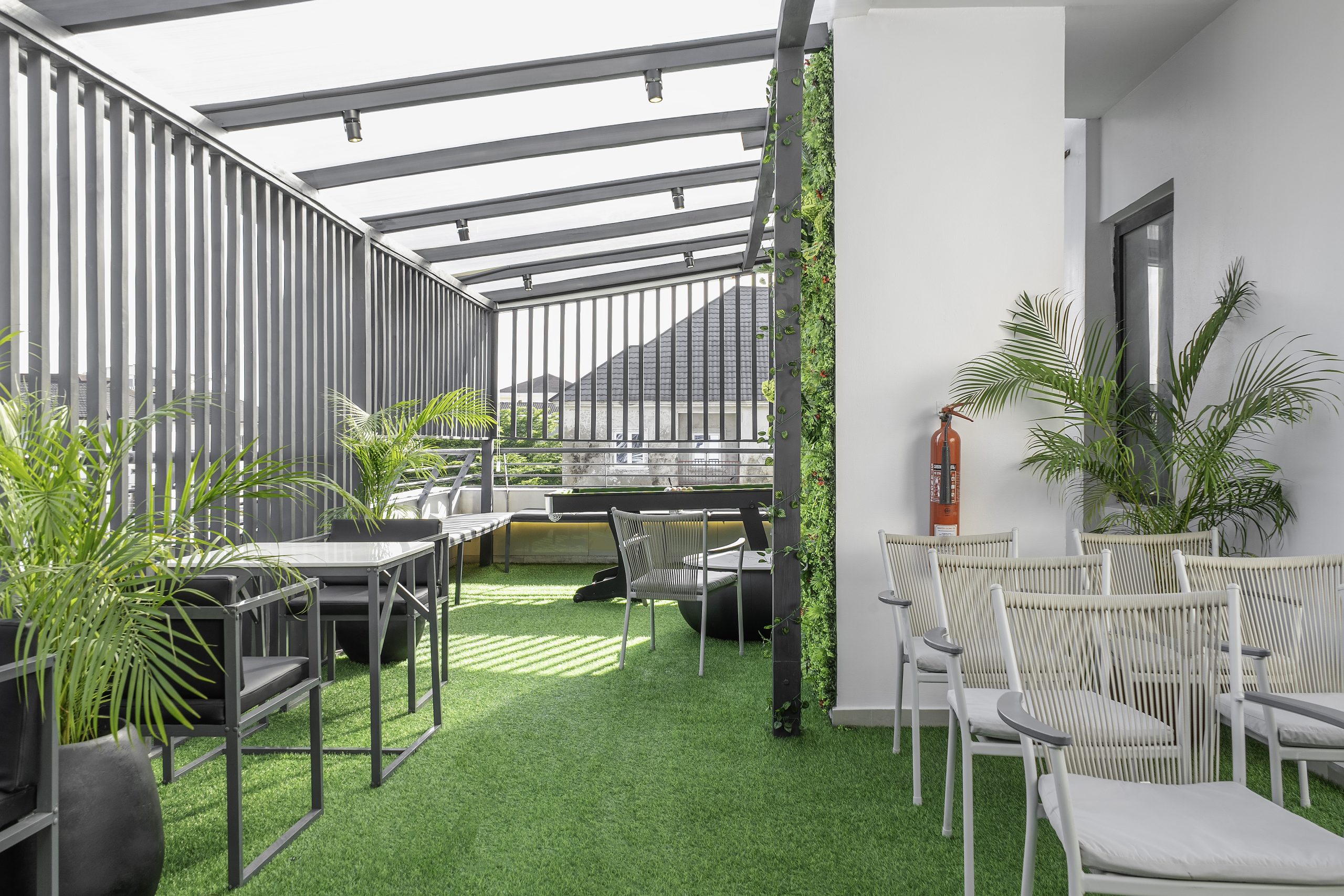 We told a story of modern elegance meeting natural charm. We started with sleek, contemporary furniture to create a sophisticated vibe. Then came the fun part: we designed a vibrant vertical garden wall that instantly brought a refreshing touch of nature to the city skyline. A translucent pergola roof above filters the sunlight beautifully, creating a soft, peaceful glow. The space was designed to be versatile, with cozy spots for quiet chats and open areas for social gatherings.