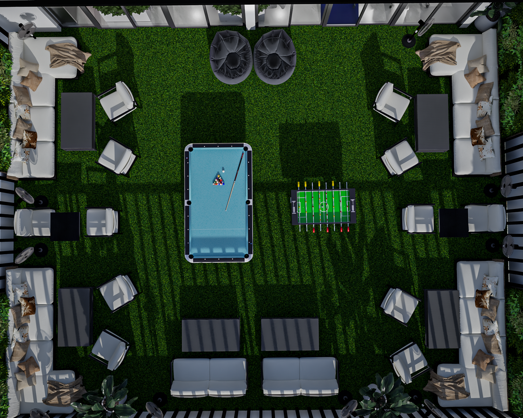 Our creative proposal was a story of balance. We designed dedicated zones for every need: a welcoming reception, a dynamic co-working space, and a quiet conference room. But the heart of our vision was the open terrace. We imagined it as a vibrant social hub, a place for employees to recharge with a game of pool or foosball, relax in bean bags, and connect with each other. It was all about creating a workspace that supports a healthy, happy team.