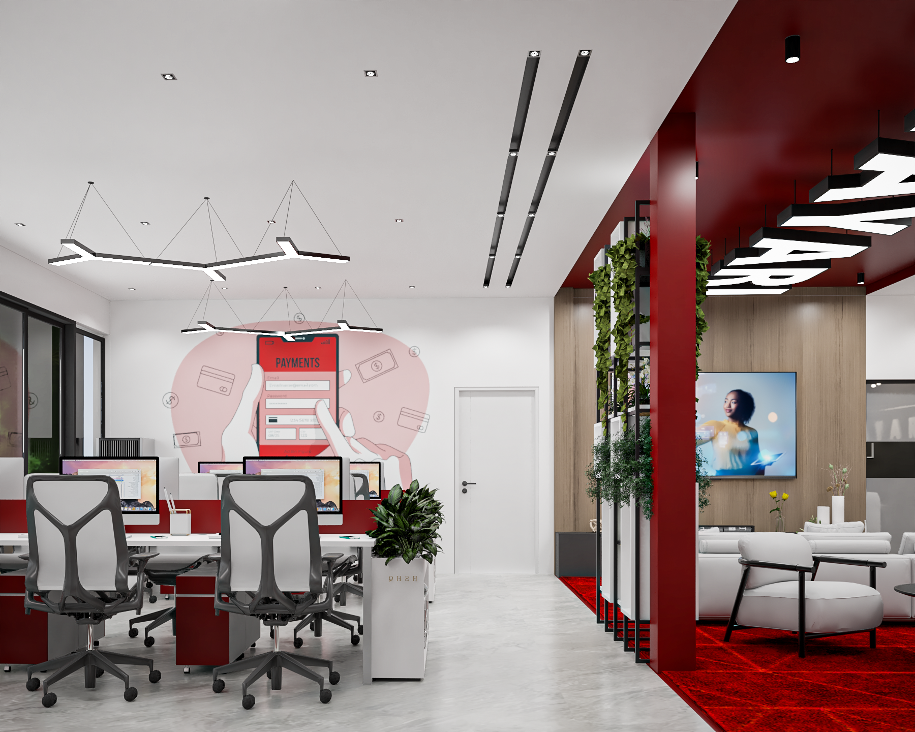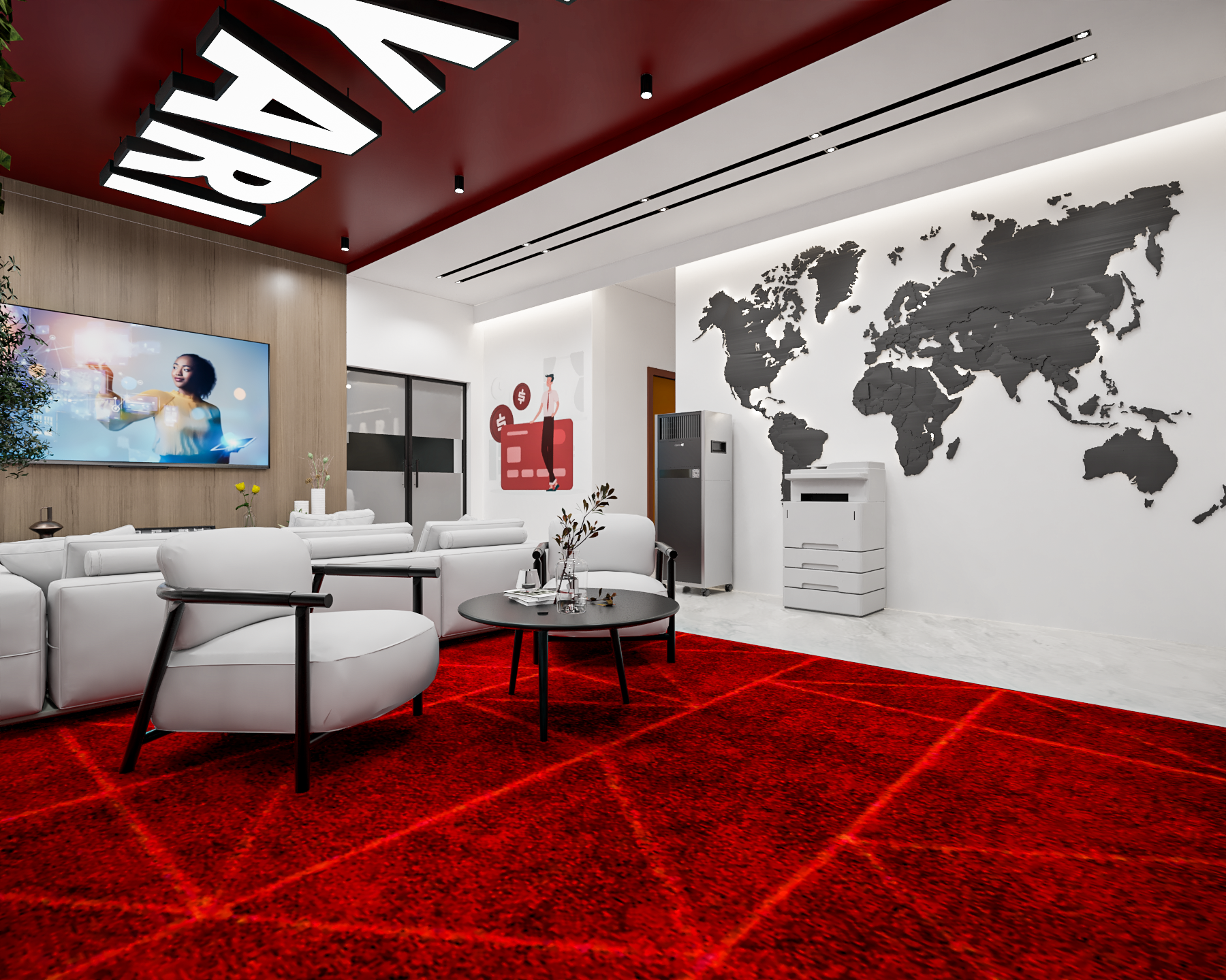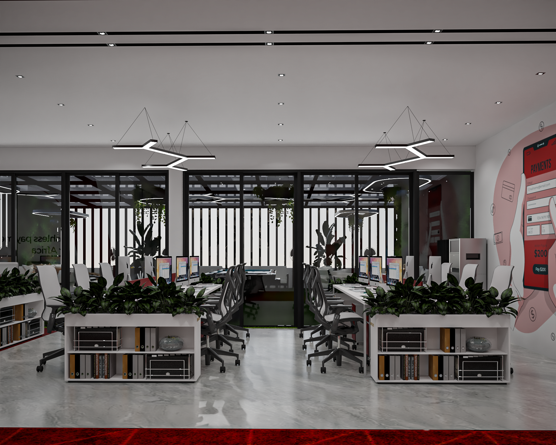 For this project, we were invited to dream up a design proposal for a tech company in Uganda. The vision was to imagine a modern, multifunctional office that was as much about people and well-being as it was about work. The goal was to create an inspiring environment that could support everything from deep focus to playful, collaborative breaks.